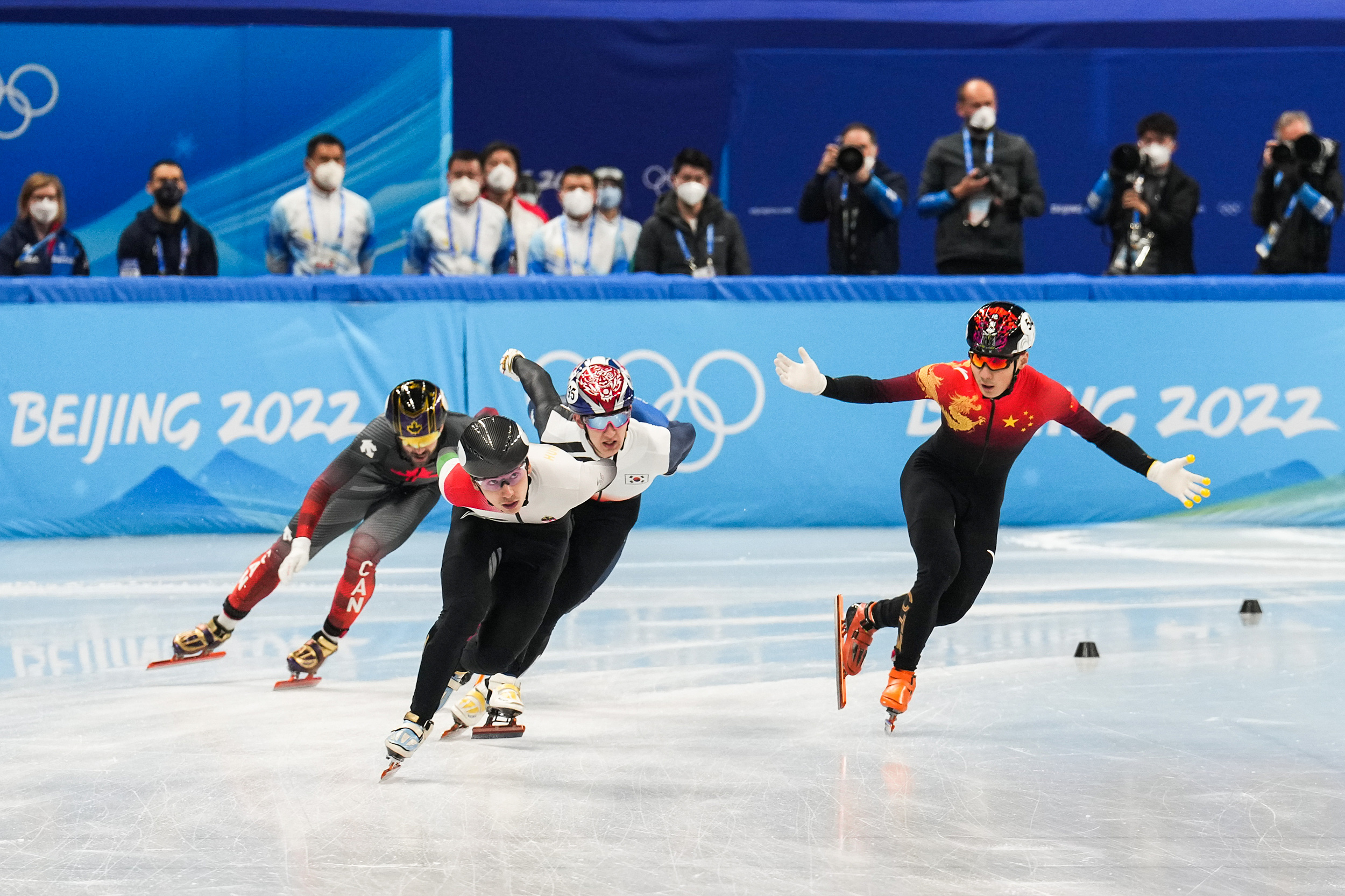 北京時間2月9日,在首都體育館裡,韓國名將黃大憲在男子1500米的決賽中第壹個沖過終點,為韓國短道速滑隊贏下首金。