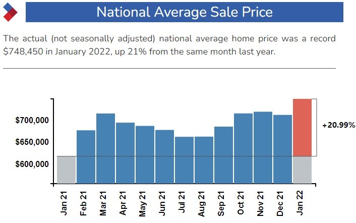 (加西网综合)根据加拿大房地产协会 CREA 的最新统计,2022 年 1 月,未经季节性调整的加拿大全国平均实际房价为 748,450 加元,这是前所未有的历史新高,比去年同期水平上涨了 21%。