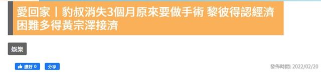 此時的黎彼得身上已經沒有積蓄,連日常生活都成問題。好在這個時候黃宗澤伸出援手,主動找到黎彼得並且給予幫助,解決了他的吃飯問題。- 新聞來源於其它媒體,內容不代表本站立場!