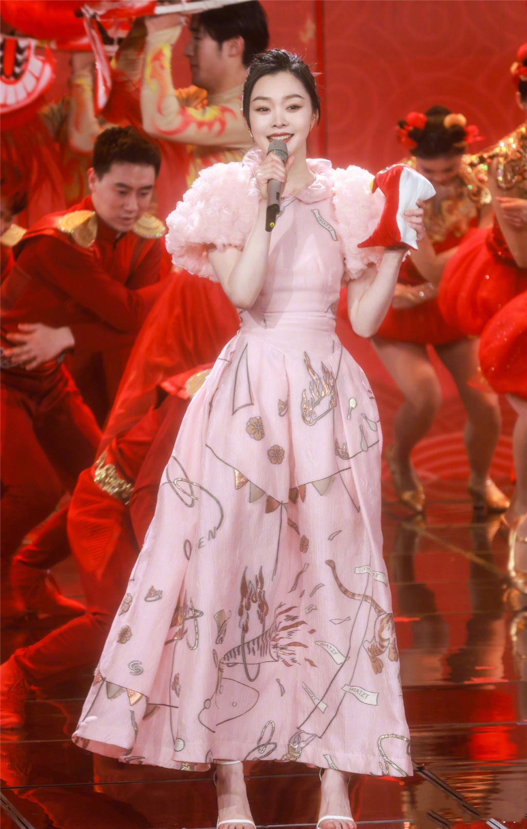 比如在2022年的元宵晚会上,演员宋轶就以一身国潮风金粉福虎旗袍裙造型亮相。