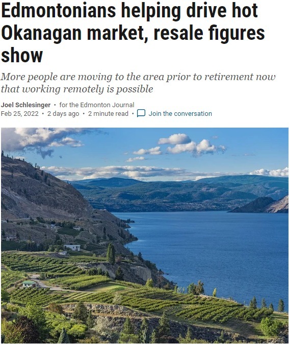 分析指出,奧肯那根房價的上漲,不僅有房市自身的火熱,還有埃德蒙頓買家的重要貢獻。