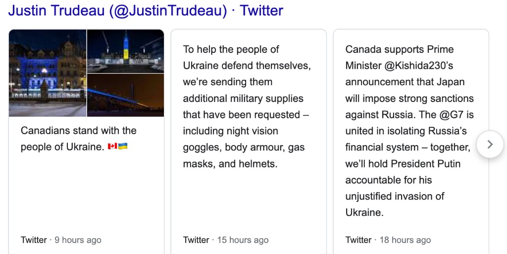 “當我們繼續回應普京總統公然無視國際法和人權的行為時,我們將支持烏克蘭和烏克蘭人民,”他在推特上寫道。