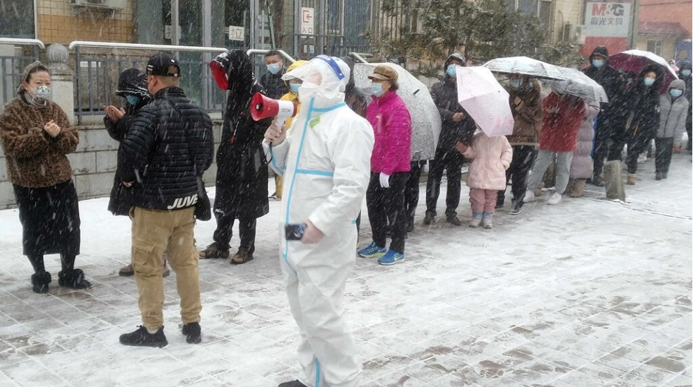 3月12日排隊做核酸的長春市民。 ? AP供圖