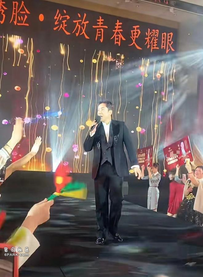 盡管舞台有些簡陋,但絲毫沒有影響毛寧唱歌的興致。只見他在舞台上來回奔走,連唱數首自己的經典歌曲。