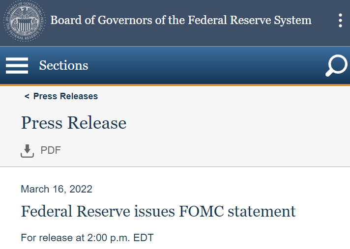加西網報道:美國今天按下了加息的按鈕。美聯儲周叁自 2018 年以來首次啟動高風險措施,以抑制自 1970 年代以來最嚴重的通脹,提高其基准利率25 個基點,並暗示今年可能加息柒次。