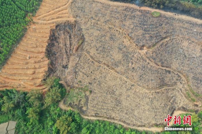 圖為3月22日,航拍的東航客機墜毀現場畫面。中新社記者 陳冠言 攝