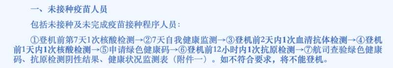 (壹)未接種及未完成疫苗接種程序人員,登機前需要完成以下檢測: