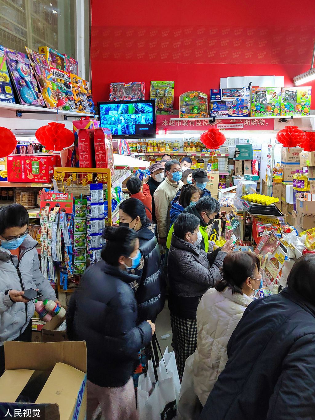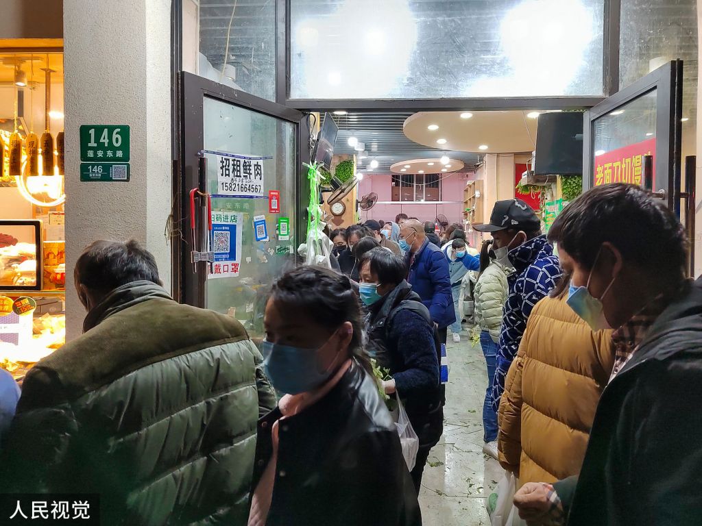 據官方的「浦東發布」消息,27日晚上,上海浦東新區仍在營業的超市、賣場均營業至24時。不少市民聞訊紛紛出動,趕到超級市場搶購物資。有地區的超市門口排了200公尺長的人龍。有影片顯示,兩名男子因為搶購蔬菜、水果大打出手。