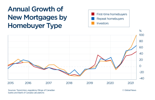 根據加拿大銀行今年早些時候的壹項分析,在COVID-19 大流行期間,投資者購房的速度已經超過了首次購房者甚至重復購房者。