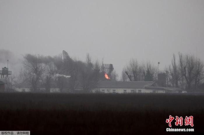 当地时间2月24日,马里乌波尔机场附近的一处军事设施起火。