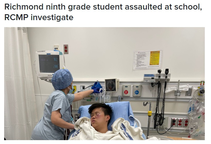 (加西網綻)列治文壹名14歲女生,在校內被高年級男學生毆打昏迷後,被送往醫院。加拿大皇家騎警已展開調查。