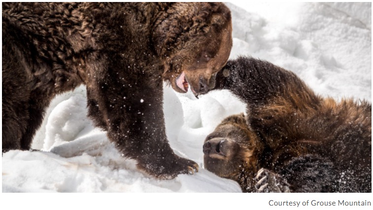 這2只分別叫Grinder 和 Coola 的灰熊自2001年以來,壹直在松雞山瀕危野生動物保護區居住。它們是在BC省因弗米爾(Invermere)和貝拉庫拉(Bella Coola)兩起不同的事件中成為孤兒後獲救。