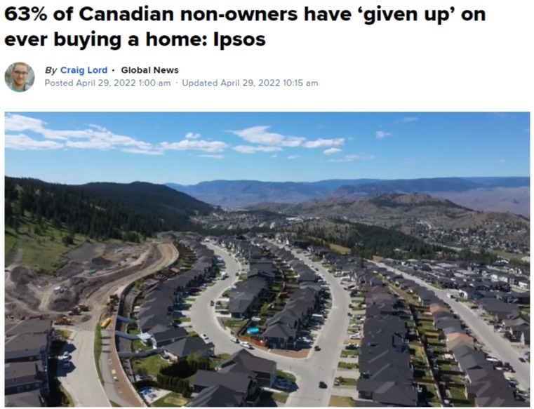 最新益普索 Ipsos 的民意調查結果顯示,有 63% 的加拿大人在最近的市場環境下暫時擱置或是徹底放棄了買房的計劃。