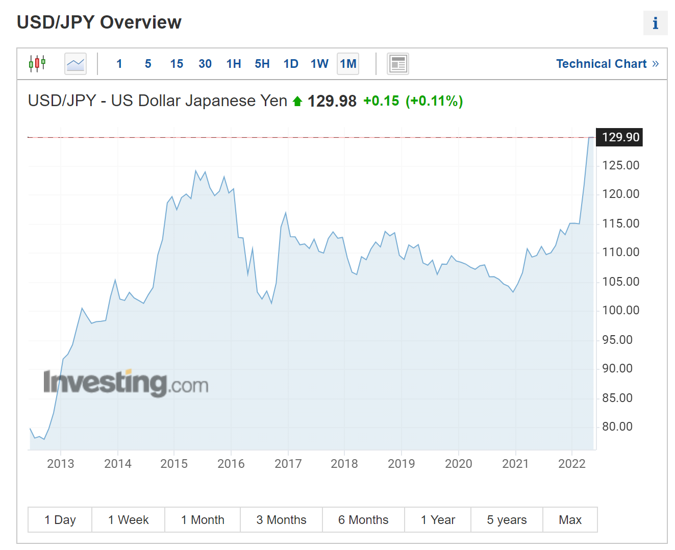 在此番拋售背後,是美國與亞洲國家越來越大的貨幣政策差異。美聯儲為應對通貨膨脹而進行的緊縮措施可能在未來幾個月內多次加息,但日本央行仍然囿於無盡的刺激措施,這使得日元貶值至20年來的低點。