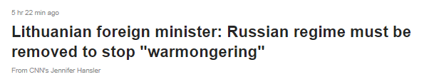 CNN:立陶宛外长称必须推翻俄罗斯政权以阻止“好战”行为