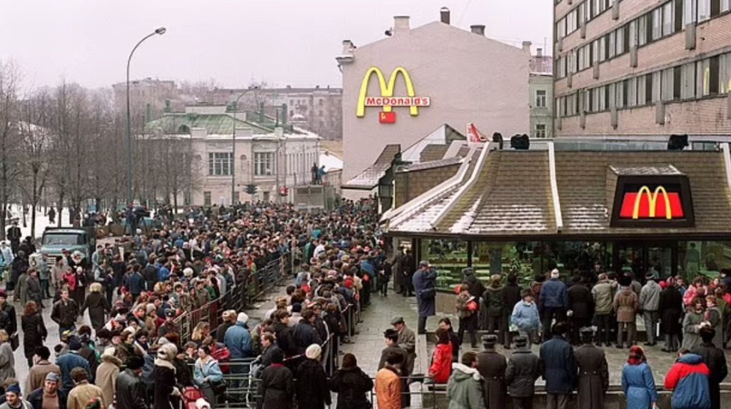 三十多年前,柏林墙倒塌后不久,俄罗斯的第一家麦当劳在莫斯科市中心开业。