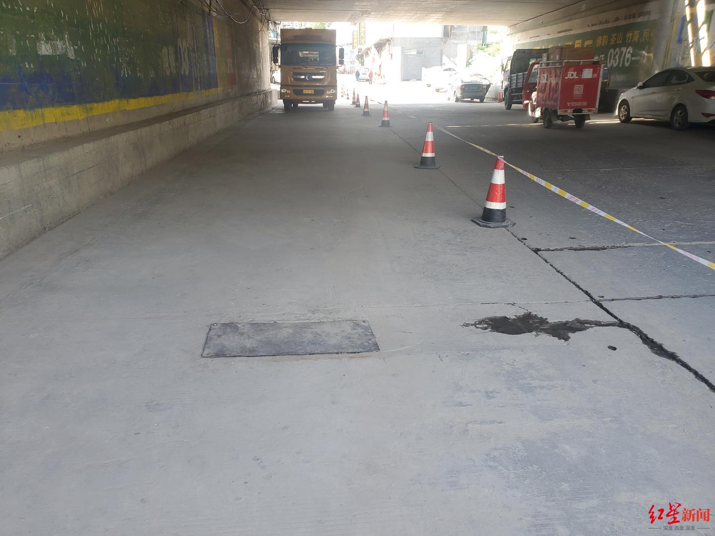5月17日上午,事發地牽起了警戒線,原來的井蓋被固定