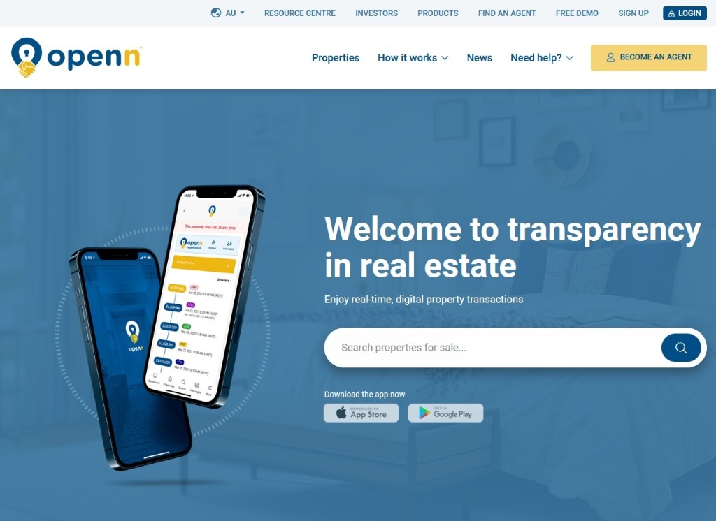Openn 公司在澳大利亚负责房屋公开竞价工作,创建了房地产公开报价系统(见下图)。