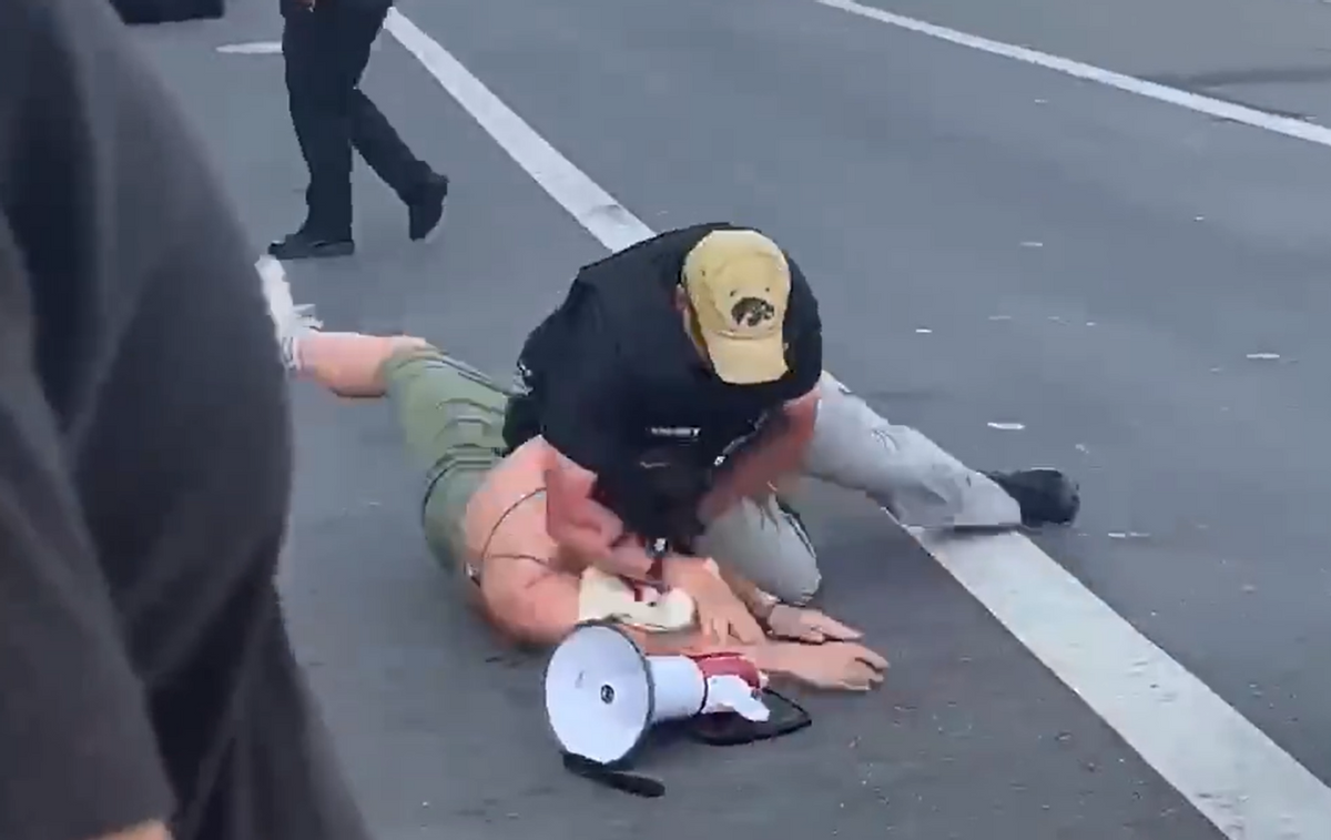 另壹段畫面顯示,特勤局人員試圖控制住女抗議者的行動,用全身的重量把她摁在地上,後來他的同事也過來幫忙,用手銬將女抗議者銬了起來。女抗議者趴在地上,似乎在不停地斥責對方。