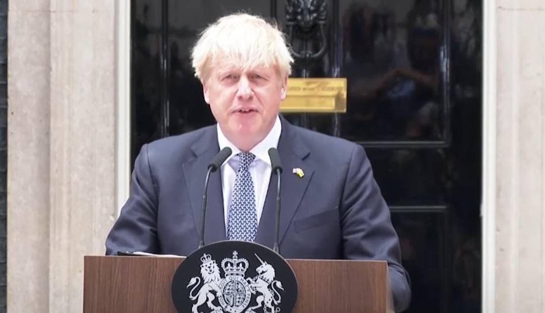 2022年7月7日,英國首相鮑裡斯·約翰遜在首相府外發表辭職聲明