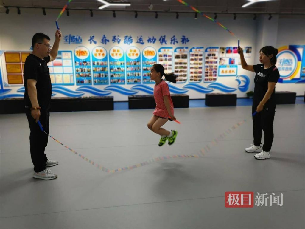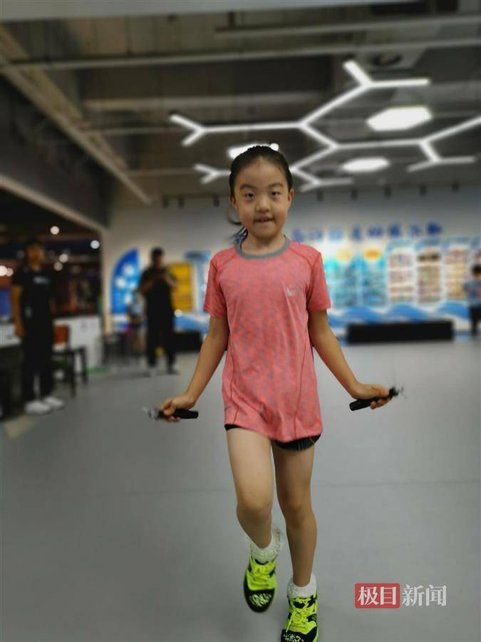 7月12日晚上6時40分許,極目新聞記者走進長春市朝陽區延安大街壹家大型購物廣場負壹樓的跳繩俱樂部,壹個身穿夏季運動裝、扎著馬尾辮的小女孩,正揮動著胳膊在不停歇地跳繩。額頭上,微微露出的汗珠。