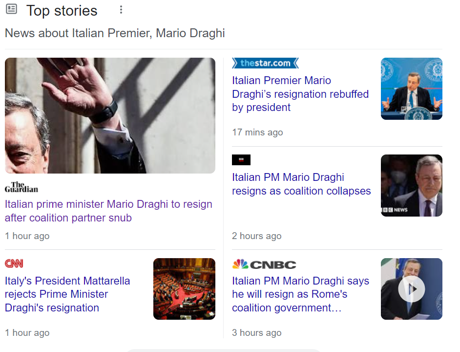 意大利總理德拉吉7月14日雖挨過信任投票,但表示大聯合政府將難以維持,宣布辭職。