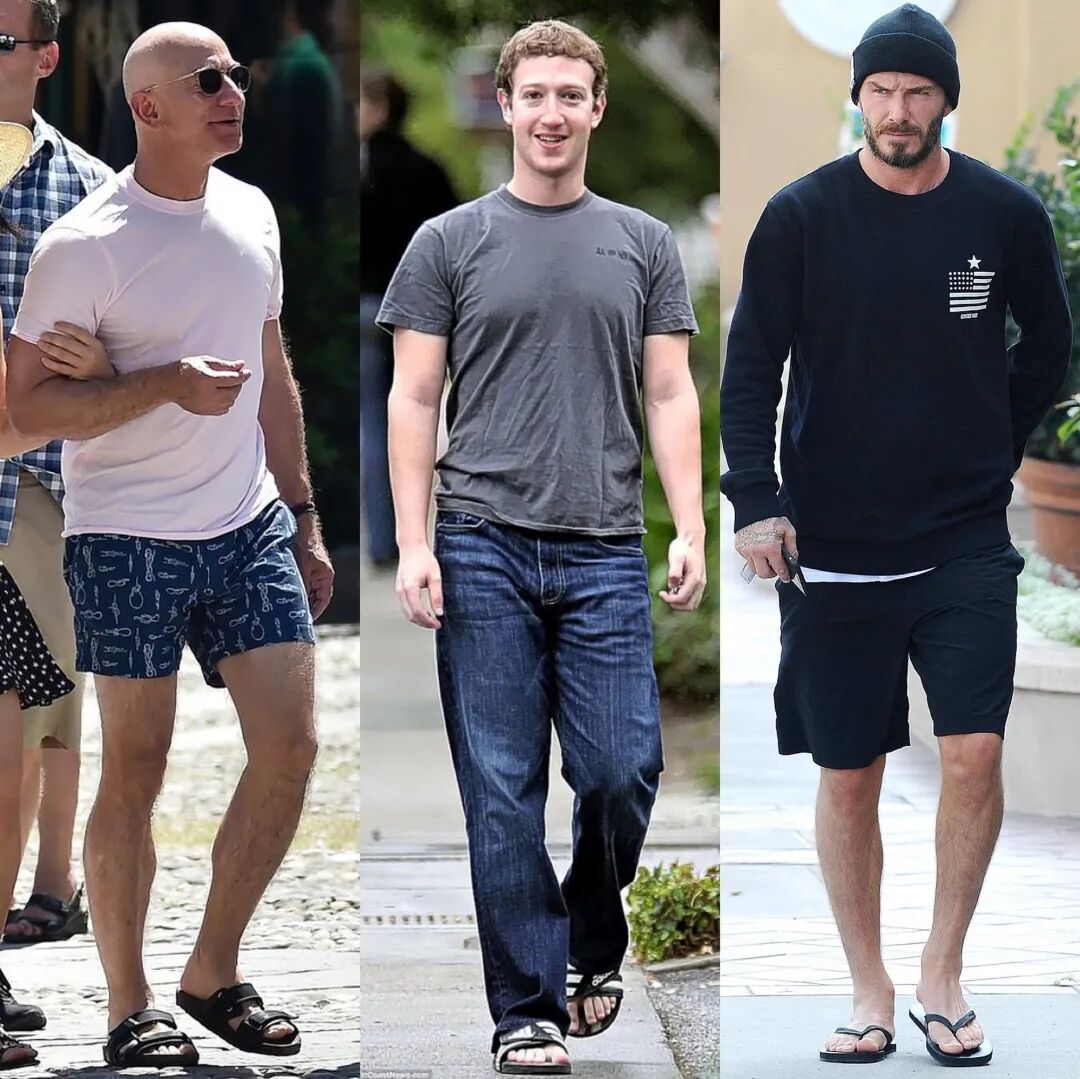 范主發現,愛穿涼拖的名人大佬其實非常多,從貝克漢姆、貝佐斯到扎克伯格,都是涼拖的忠實愛好者。