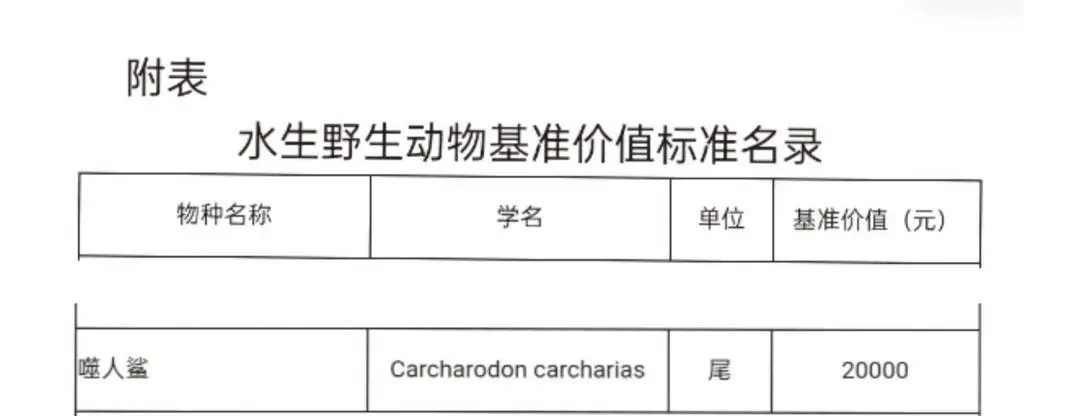 負責人解釋,根據農業農村部令〔2019〕5號:《水生野生動物及其制品價值評估辦法》,噬人鯊基准價值為20000元,“鯊魚的大小等因素,都涉及最終的案件結果。”- 新聞來源於其它媒體,內容不代表本站立場!