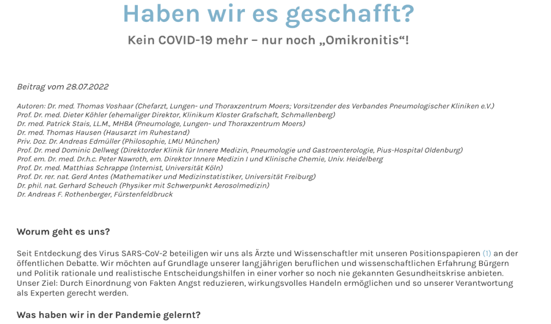 近日,《世界報》采訪了近幾年壹直致力於新冠病毒研究的德國肺病學家教授托馬斯?沃沙爾(Thomas Voshaar):該教授與專家團隊公開共同呼吁無需在秋季到來時收緊防疫措施,“是時候和新冠病毒引起的恐慌擔憂說拜拜了!”