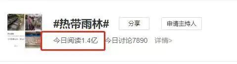 8月29日,微博上#熱帶雨林#登上熱搜,閱讀量有足足1.4億,