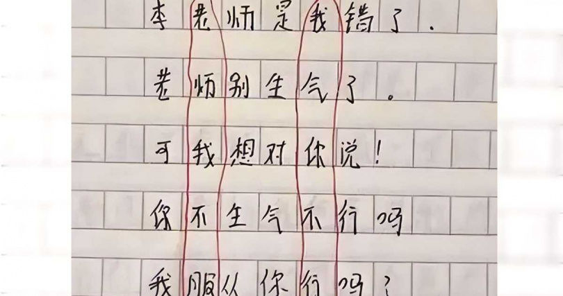 還有學生用畫圖的方式認錯兼討拍,“爸爸媽媽,今天聽寫我聽得不好,老師叫你們簽名,我會改正的”、“我錯了,我再也不裝B了”。這些悔過書曝光後,許多網友笑說老師看了心中怒氣大概也消失,不過也有老師指出“教小學生太累了”,常常被學生搞得柒葷八素。
