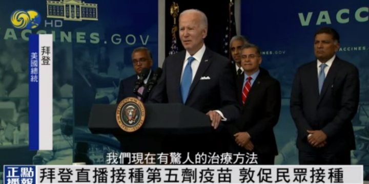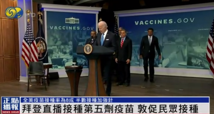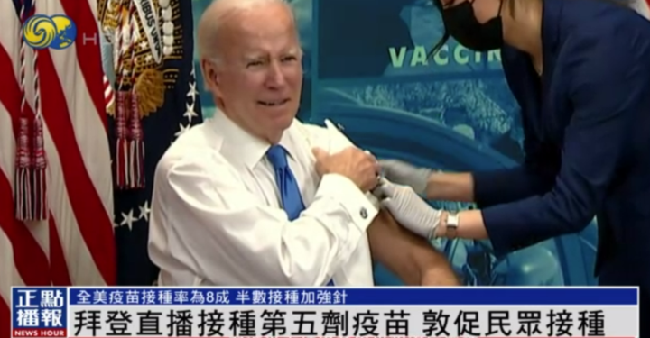 拜登當天在白宮接種了第叁劑加強針,截至目前拜登共接種伍劑疫苗。他鼓勵民眾盡快接種加強針,並且在確診後接受治療。