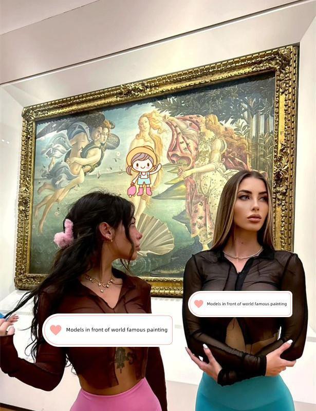 據英媒《每日星報》10月29日報道,近日,意大利兩名模特亞歷克斯·穆奇(Alex Mucci)和伊娃·明塔(Eva Menta)因身穿透視裝與世界名畫合影而備受爭議,壹些政界人士表示非常憤怒,但壹些藝術家則表示支持。