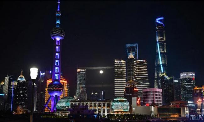 圖為上海市民中秋節時到外灘賞月。(法新社)