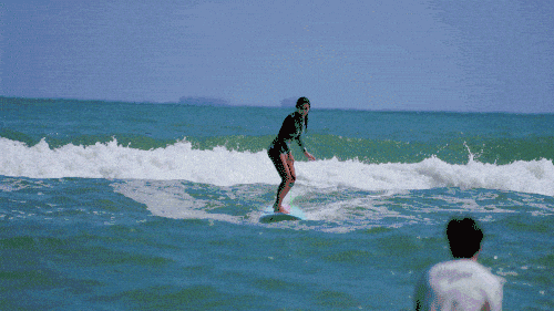佳佳在海邊沖浪。/《全職浪人再就業》