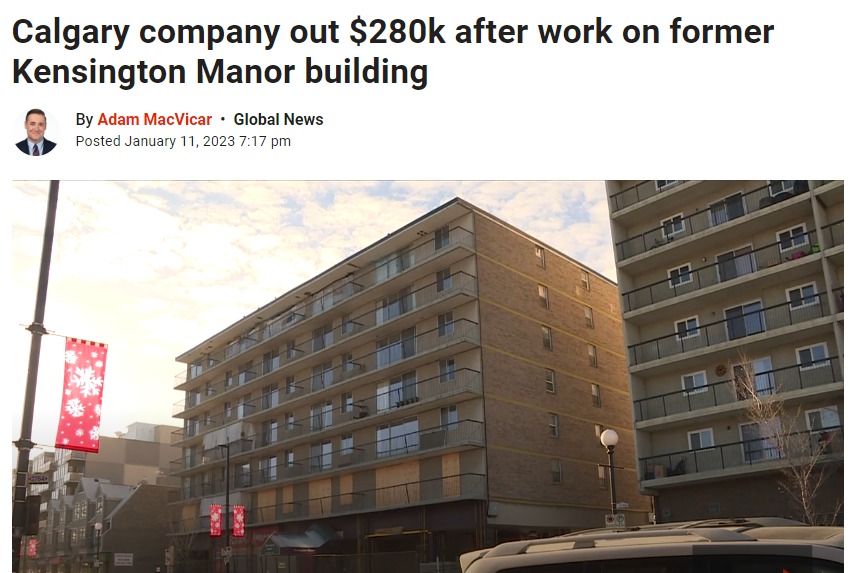 (加西網綜合)卡爾加裡的壹家建築修復公司表示,它為前肯辛頓莊園公寓樓的工作支出了數拾萬元的費用,這筆費用因為要不回來而打了水漂。