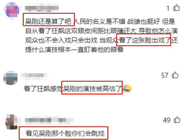 他的名字也不再是收視保障,而是觀眾的避雷關鍵詞,“吳剛還是算了吧”“演技被高估”“看見那個臉會跳戲”。