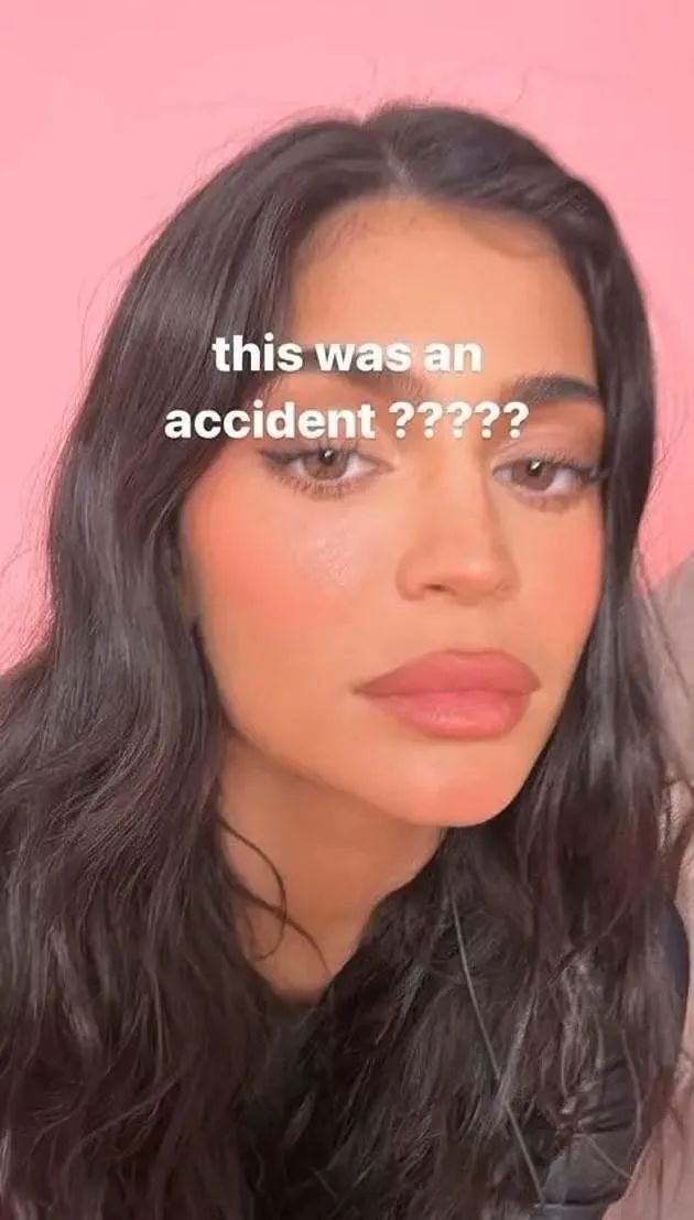 这时,金小妹凯莉·詹娜 (Kylie Jenner)乱入了。金小妹在Ins中上传了一张自拍,并附上文字:“这是一场意外???”
