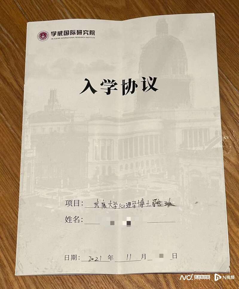 孫女士與學威簽訂的武康大學心理學博士學位班《入學協議》。