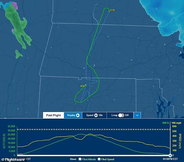 根據Flight Aware的數據,這架飛機於星期伍從利斯堡飛到迪蘭特/霍普金斯 。