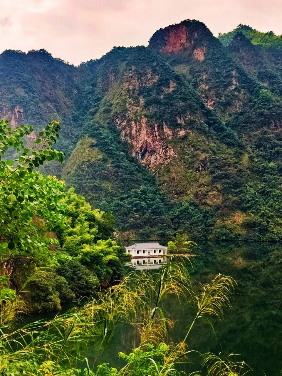 銅鈸山有著45萬公頃的原始森林,在銅鈸山的綠樹掩映下,九仙湖以其飄逸的神態與山水相依。