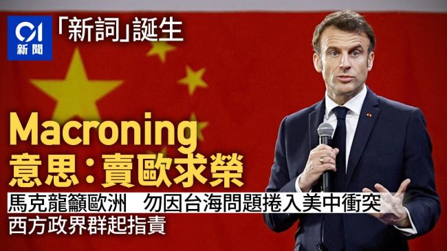 親中共媒體香港01報道:法國總統馬克龍(Emmanuel Macron )4月7日接受媒體訪問稱歐洲應避免因台灣問題拕螂脴沸衝突之中,而歐洲應作戰略自主,減少依賴美國。輿論為之反彈,不少歐美政界人士狠批,網上也出現Macroning壹詞,指責他“賣歐求榮”。