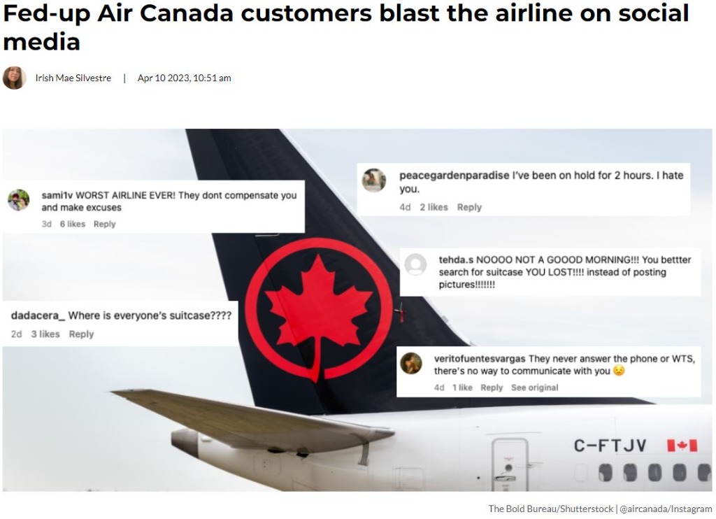 據DailyHive報道,加拿大航空公司的社交媒體團隊在管理公司平台評論部分,出色的完成了任務。