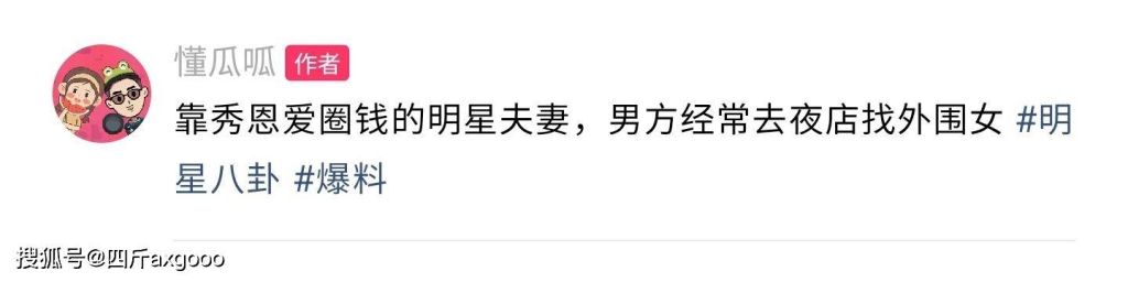 4月10日,娱乐圈知名狗仔“懂瓜呱”在个人账号上再曝大瓜,称圈内某对经常秀恩爱的明星夫妇,私下里其实“各玩各的”。