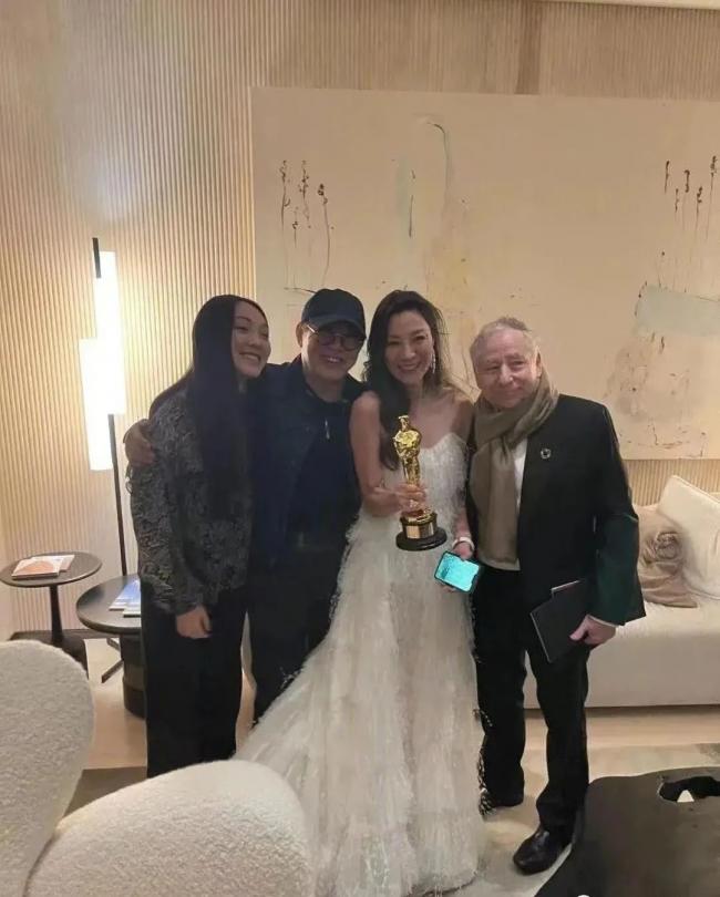 3月份的時候,李連傑帶著大女兒出現在奧斯卡頒獎典禮的現場。照片中,李連傑打扮很休閒,和楊紫瓊老公壹起合影,李連傑的表情特別有意思,他露出兩顆門牙,眼鏡盯著鏡頭,看上去很搞笑。