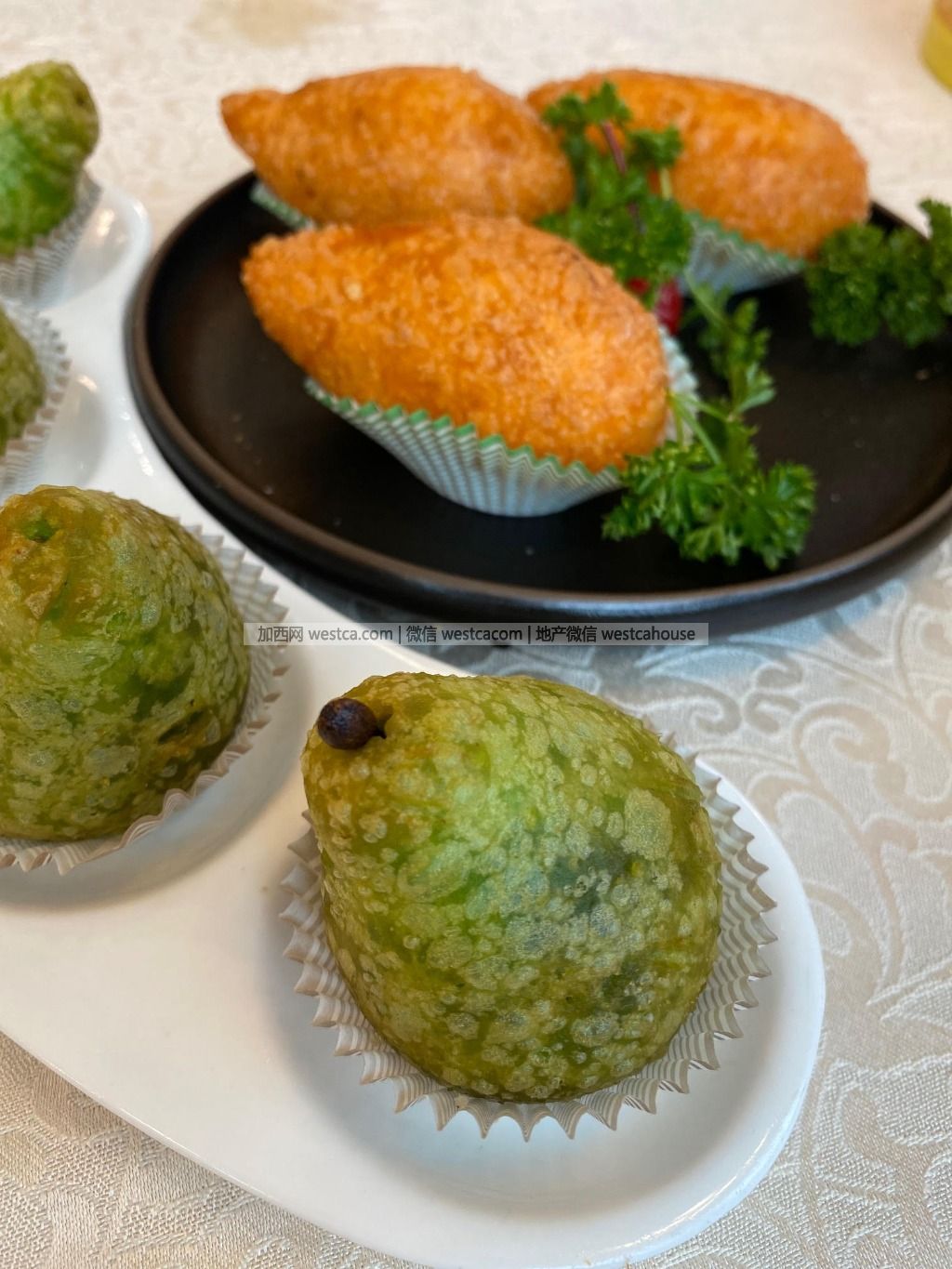 - 甘筍汁鹹水角:是粵菜中必嘗點心經典之壹,胡蘿卜造型很好看,口感甜中帶鹹,外皮脆脆的,算是無功無過