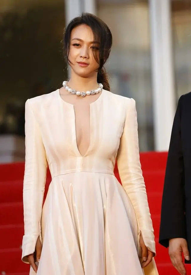 湯唯的身材不算豐滿,可是在鄰家民國風的氣質加持下,很受網友們歡迎。所以每次走紅毯,湯唯都會盡可能的揚長避短,這次挑選這款U領長裙,可謂豁出去!因為中門大開的設計,將前襟開叉到肚臍上方,相當考驗雙峰的形狀和大小,但為了防止外界過於關注自己上圍,湯唯采用珍珠項鏈的點綴轉移目光。
