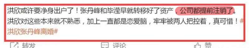 不過隨後就有網友們爆料了,其實洪欣壹直都是在隱忍著,因為這壹次洪欣離婚很可能就是淨身出戶的,因為張丹峰和畢瀅早已經轉移了所有財產,似乎和洪欣已經再也沒有關系了。所以洪欣真的是實慘。