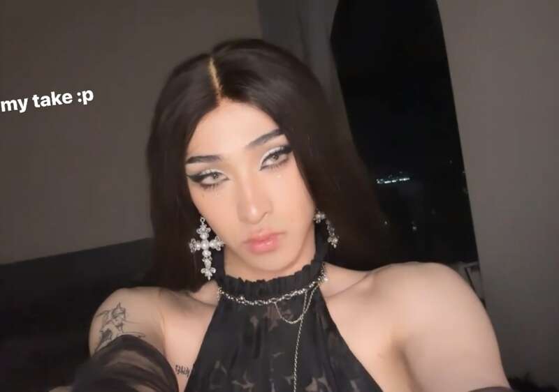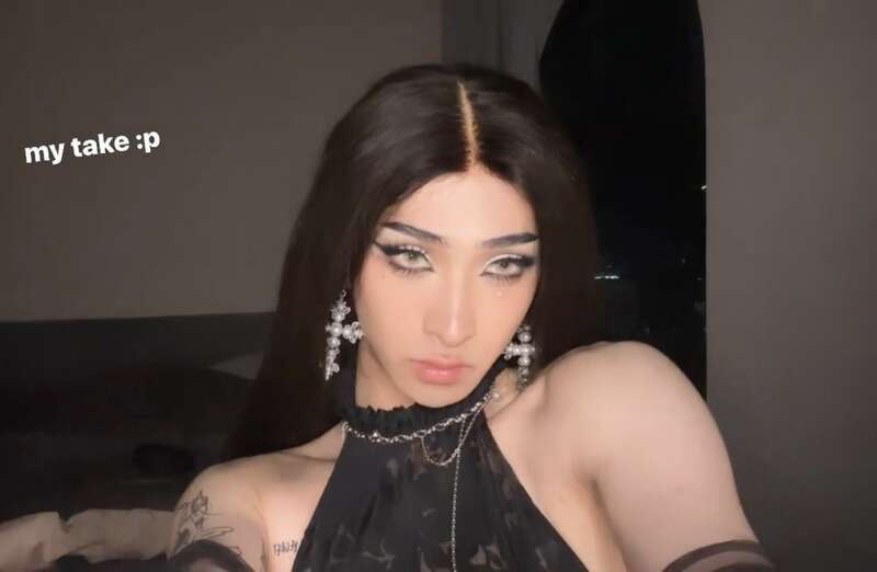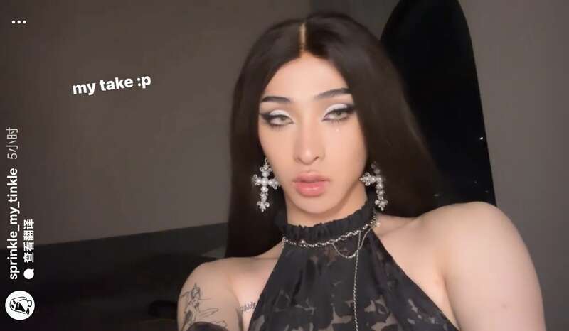 哈利戴著長假發,身穿露肩裝,大秀直角肩和手臂上的兔女郎紋身。哈利在美國上大學,大概是受到當地文化的影響比較大,所以每次妝容都拾分濃妝和誇張,不過單純談化妝技術的話,估計哈利已經超過了太多手殘黨姐妹。