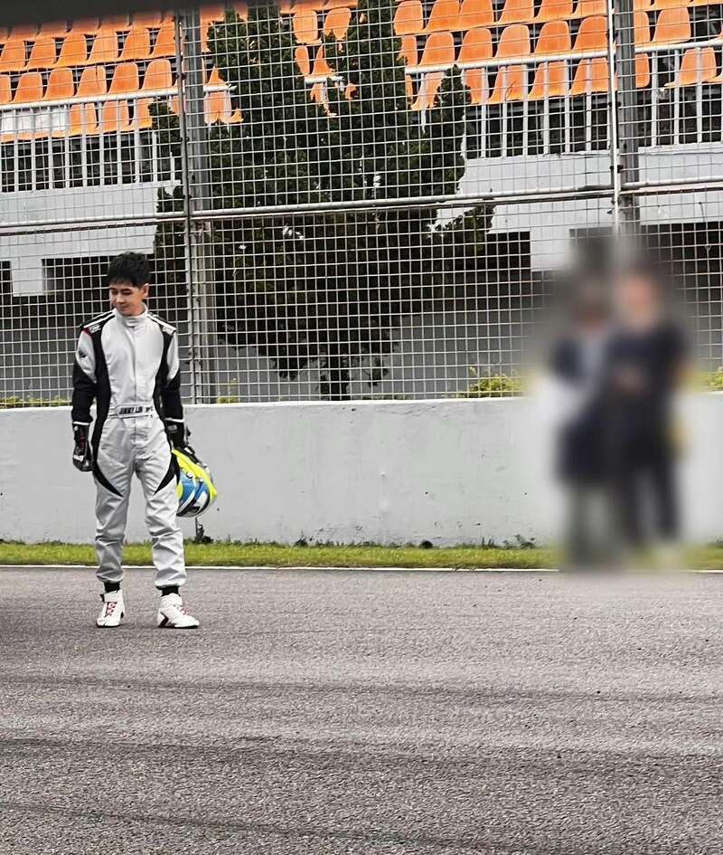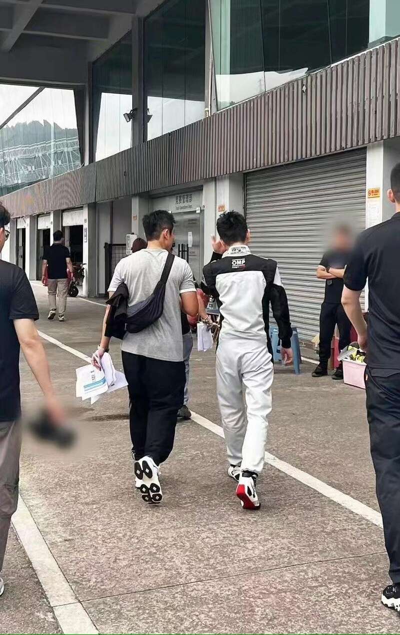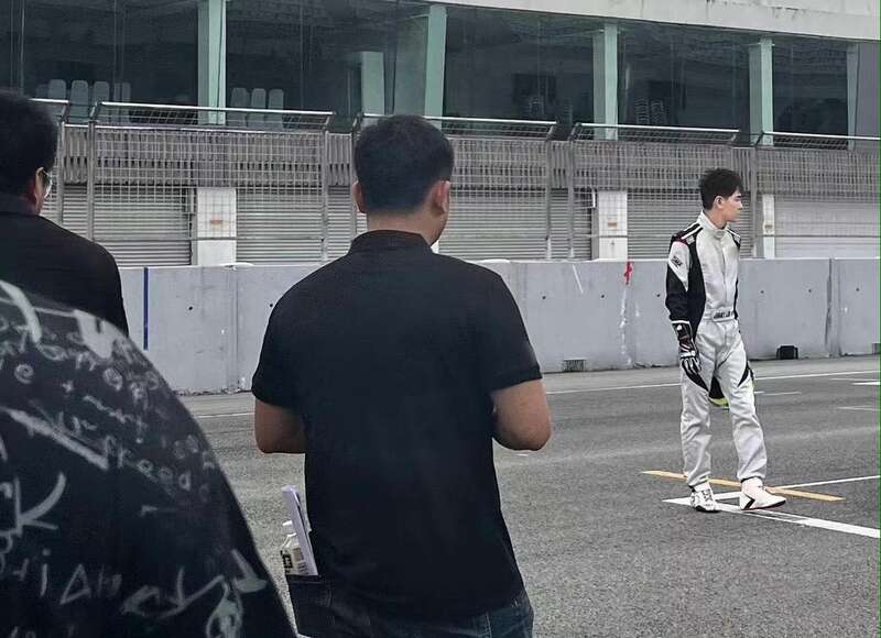 照片中,林志穎身穿專業賽車服出鏡,他在工作人員的陪同下向場區走去,期間兩人交流頻繁,應該是助理在叮囑他注意事項。